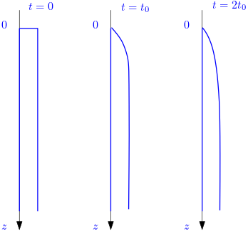 L’expression (homogène avec ν en m2.s−1), e(z,t)=gνtz n’est valide que pour z≤h(t)=νge02t.