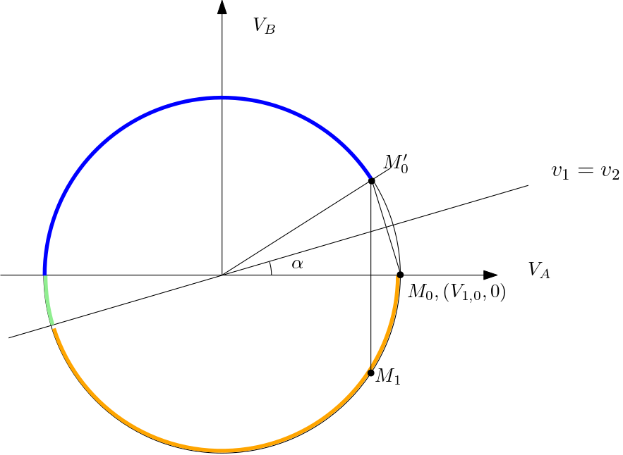 Dans le système de coordonnées (VA,VB), le point représentant le système est donc sur le cercle de centre origine, de rayon VA,0.