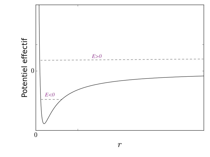 L’énergie potentielle ne dépend que de r 👉 C’est un mouvement à force centrale (La modélisation choisie conduit à une singularité de la force dont la norme devient infinie en r0).