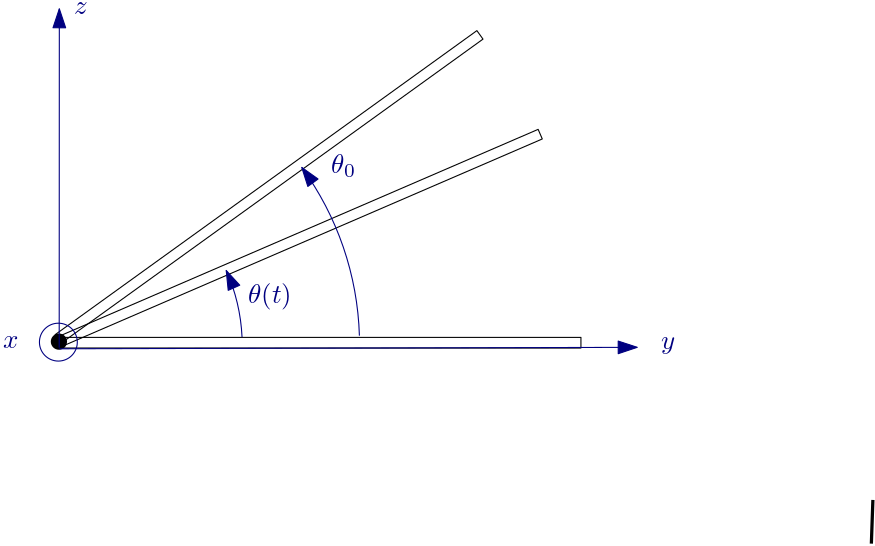 La seconde loi de Newton projetée sur l’axe vertical donne z¨=−g. Après avoir intégré deux fois z=ℓsinθ0−21gt2.