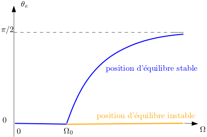 Pour ω=ω0,θ1=θ2, les deux pendules oscillent en phase, la distance entre les deux extrémités restant égale à ℓ0.