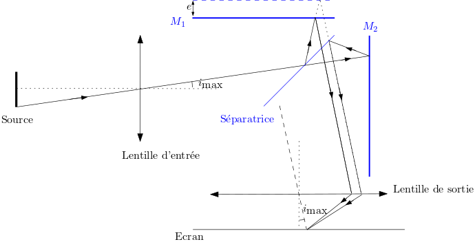 Michelson en lame à faces parallèles 👉 δ=2ecos(i), déterminer les valeurs de i possibles.
