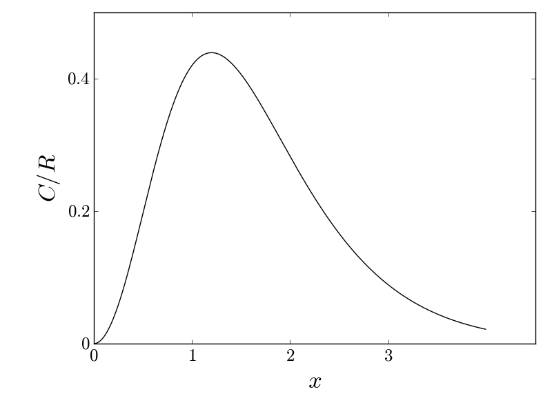 Calculer la capacité thermique C de ce système ainsi que C/R pour N=NA. Représenter l’allure des variations de C/R en fonction de x=ε2/kBT.