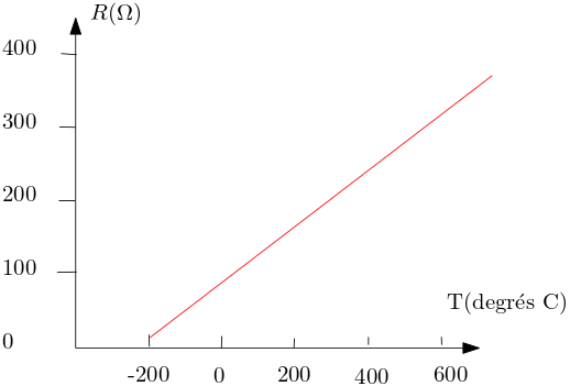 d. Commenter la courbe donnant la résistance d’une sonde de Platine en fonction de la température.