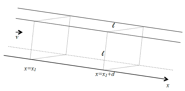 Un métal en fusion s’écoule dans une gouttière légèrement inclinée selon l’axe (Ox) avec une vitesse constante v=vux. L’écoulement a une section carrée S=ℓ2 supposée constante, sa surface libre est en contact avec l’air.